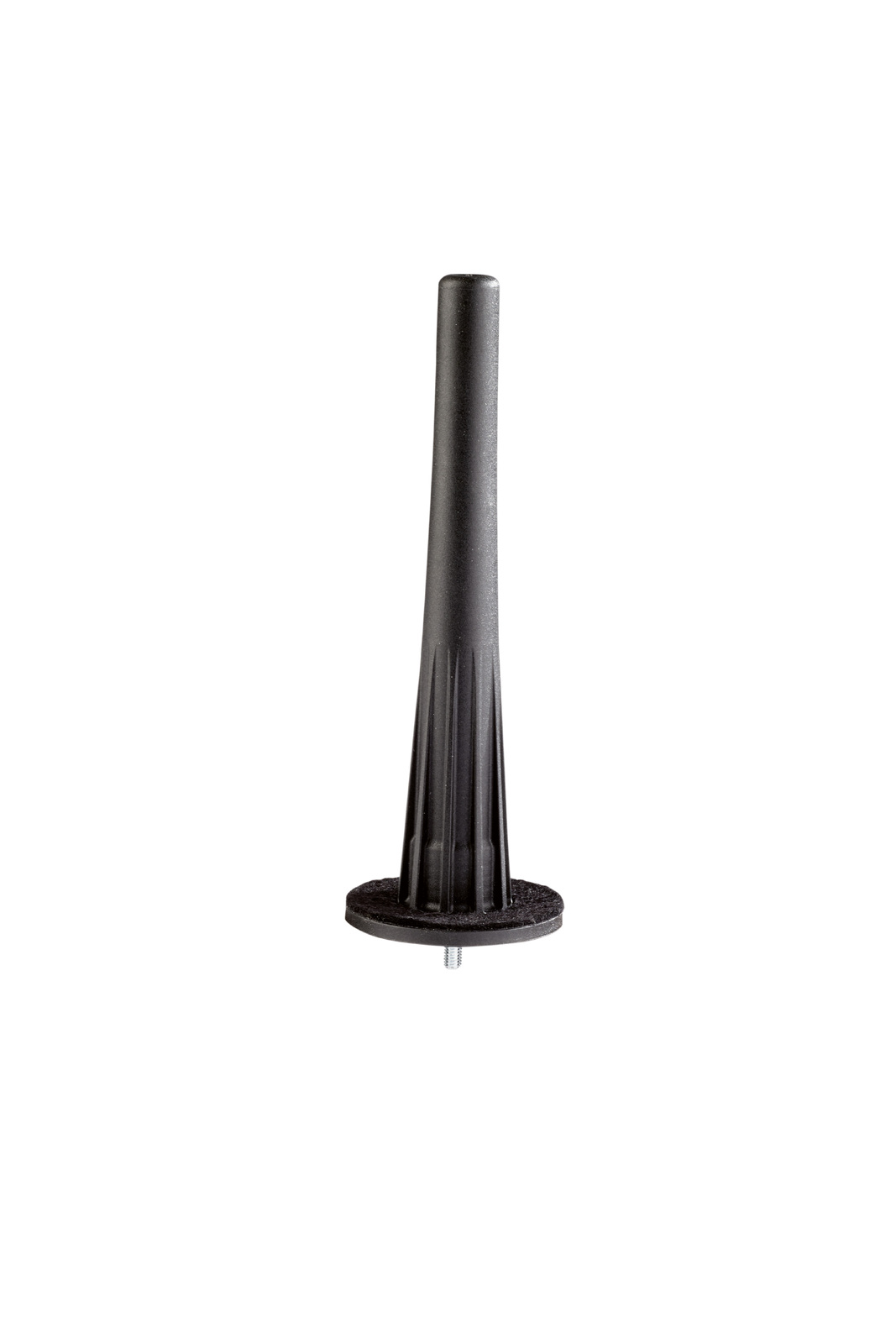 Black peg for English horn made from durable plastic. The soft felt covering protects the instrument from scratches. With the integrated threaded pin M5 it can be mounted on bracket 12210, peg holder 14301, foldable bases 17700 or 17710.