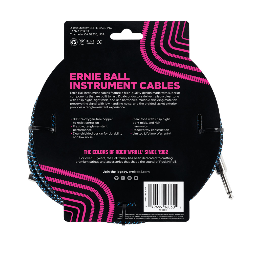 Yes, We Price - Match Ernie Ball 7.5 Meter Braided Straight / Angle Instrument Cable, Black / Blue(P06060)