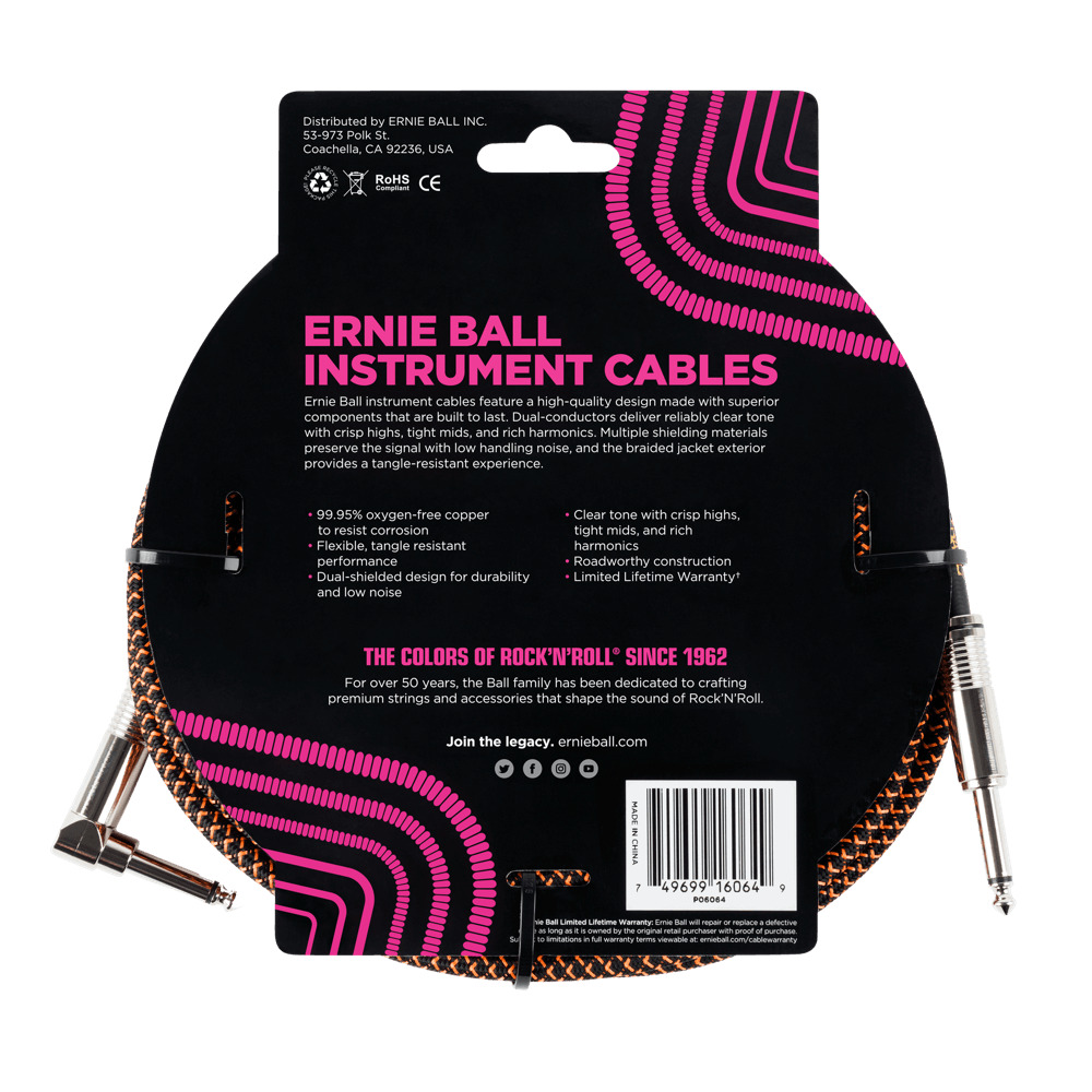 Ernie Ball 7.5 Meter Braided Straight / Angle Instrument Cable, Black / Orange
