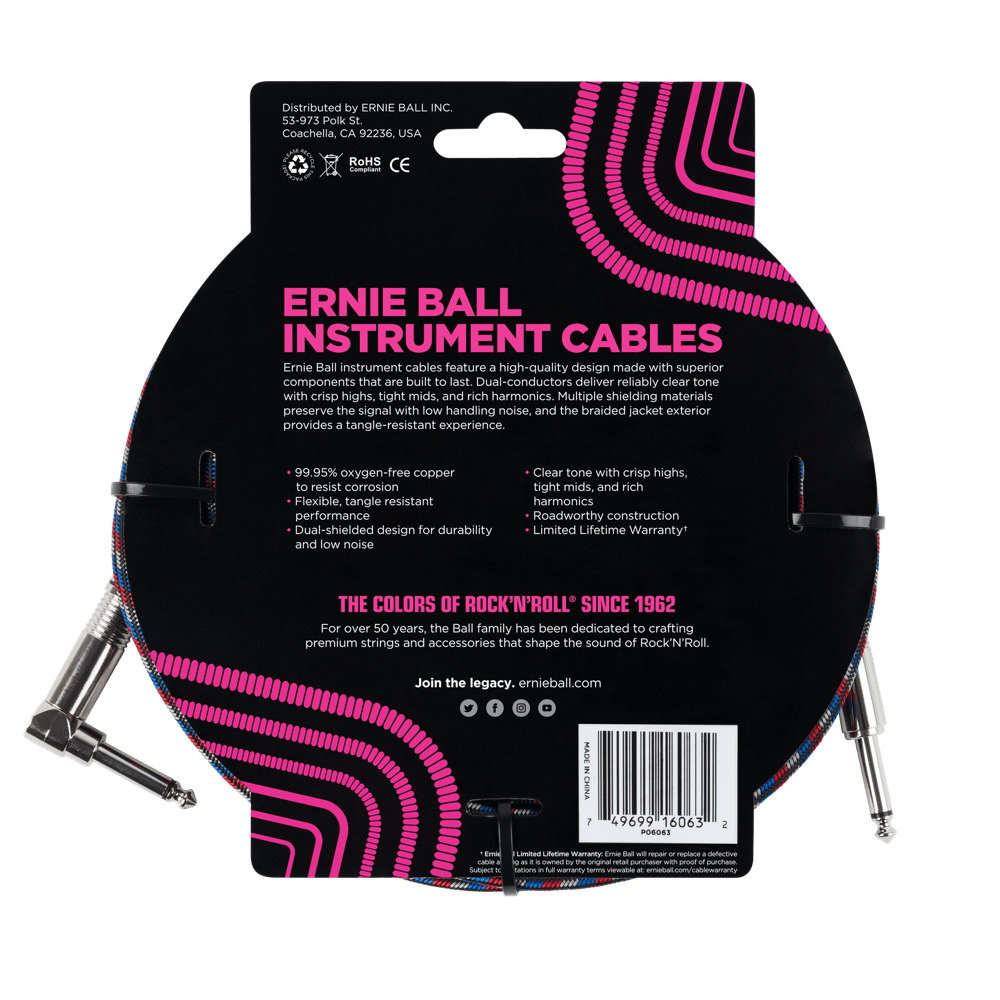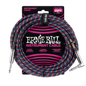 Ernie Ball 25' Braided Straight / Angle Instrument Cable - Black / Red / Blue / White