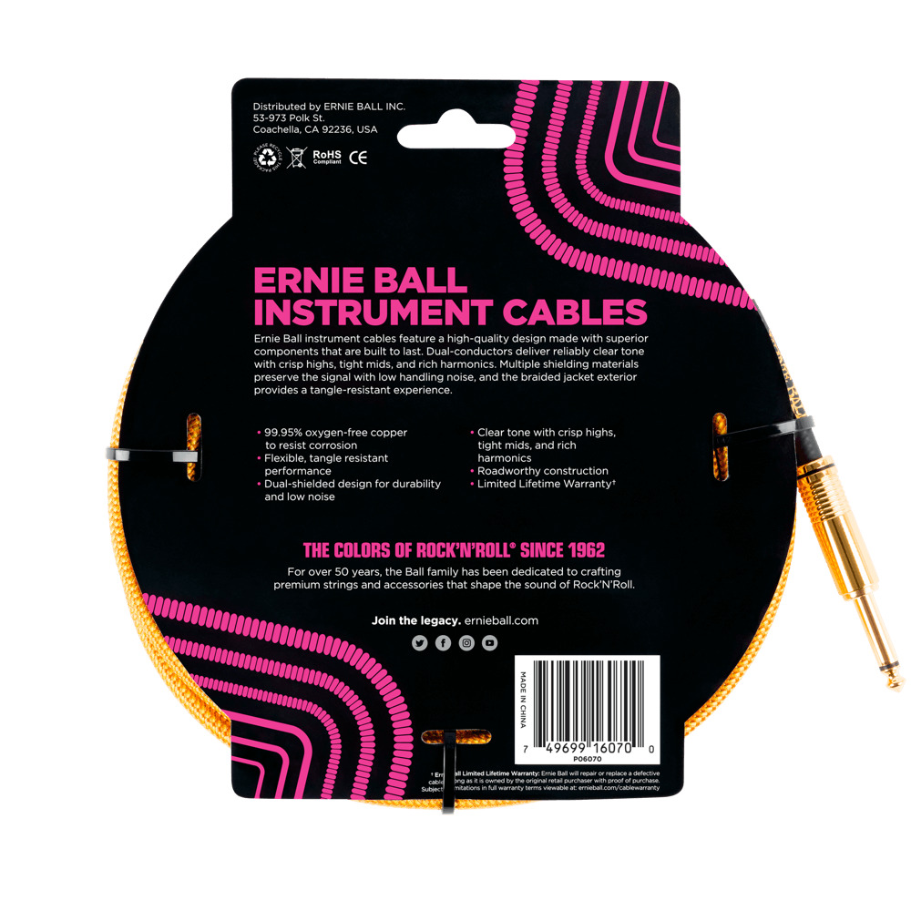Ernie Ball 25 Feet Braided Straight / Angle Inst Cables feature a high-quality design made with superior components that are built to last. Dual-conductors deliver reliably clear tone with crisp highs, tight mids and rich harmonics. Multiple shielding materials preserve the signal with low handling noise and the braided jacket exterior provides a tangle-resistant experience. Cable length 25 feet (7.62m). Available in gold/gold colour.