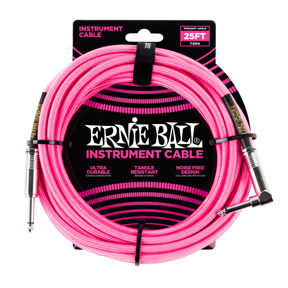Ernie Ball 25 Feet Braided Straight / Angle Inst Cables feature a high-quality design made with superior components that are built to last. Dual-conductors deliver reliably clear tone with crisp highs, tight mids and rich harmonics. Multiple shielding materials preserve the signal with low handling noise and the braided jacket exterior provides a tangle-resistant experience. Cable length 25 feet (7.62m). Available in neon pink colour.