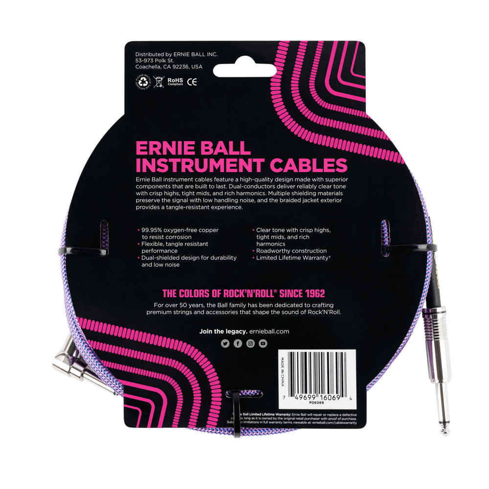 Ernie Ball 25 Feet Braided Straight / Angle Inst Cables feature a high-quality design made with superior components that are built to last. Dual-conductors deliver reliably clear tone with crisp highs, tight mids and rich harmonics. Multiple shielding materials preserve the signal with low handling noise and the braided jacket exterior provides a tangle-resistant experience. Cable length 25 feet (7.62m). Available in purple colour.