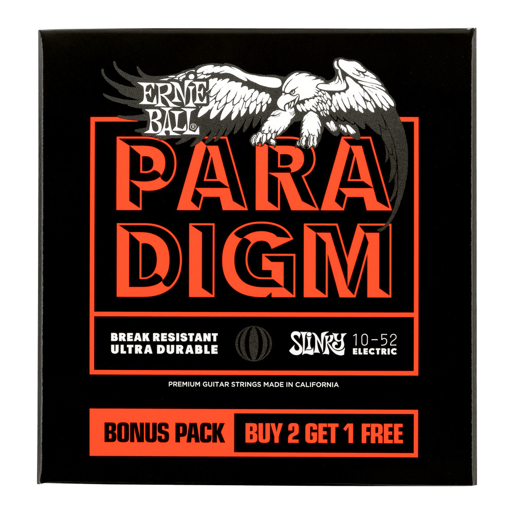 Ernie Ball Skinny Top Heavy Bottom Slinky Paradigm Electric Guitar Strings 3 Piece Pack, 10-52 Gauge