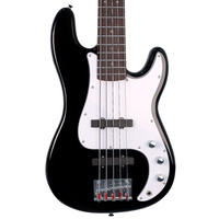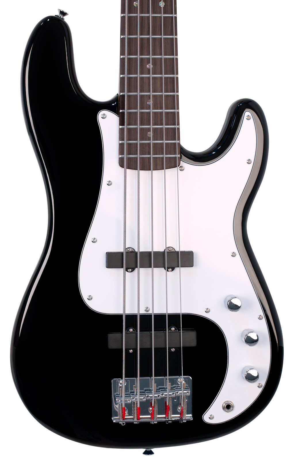 Traditional 60’s style solid basswood body. Maple neck with Rockwood fingerboard. 20 frets. 34” scale. 2 x J pickups. 2 volume and 1 tone control with chrome knobs. White 3 ply scratchplate. Chrome vintage machine heads and bridge.