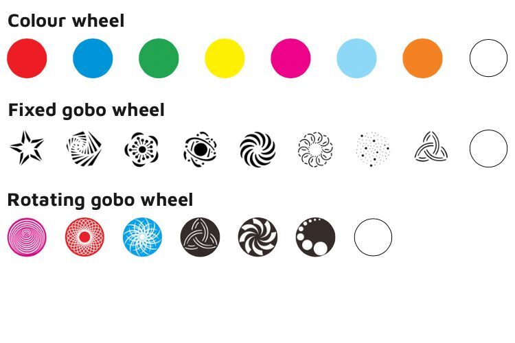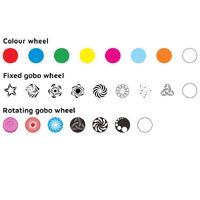 - Fixed: 1 x (8 + open) fixed gobo wheel