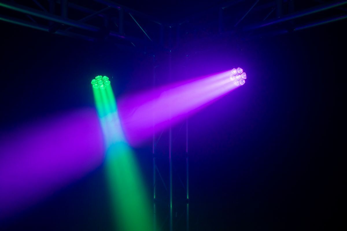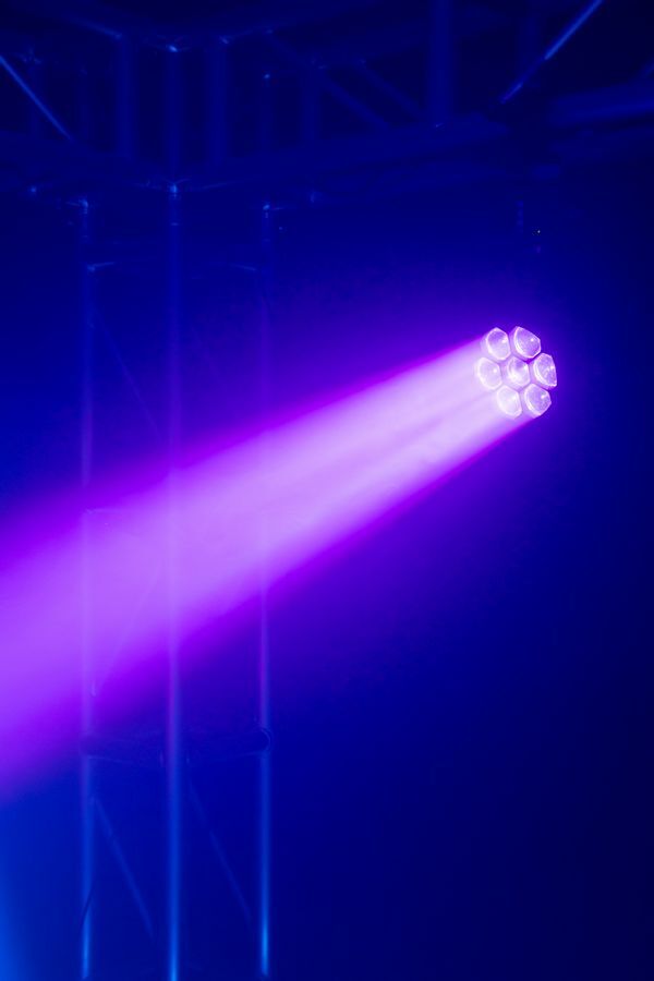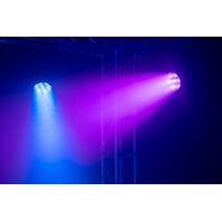 This 7x 30W zoom wash has a beam angle of 6-60 degrees. With RGBW 4-in-1 LEDs this unit comes with useful tools such as sound activation, built-in programs and pan/tilt limit modes. This unit also has the option of wireless DMX.
