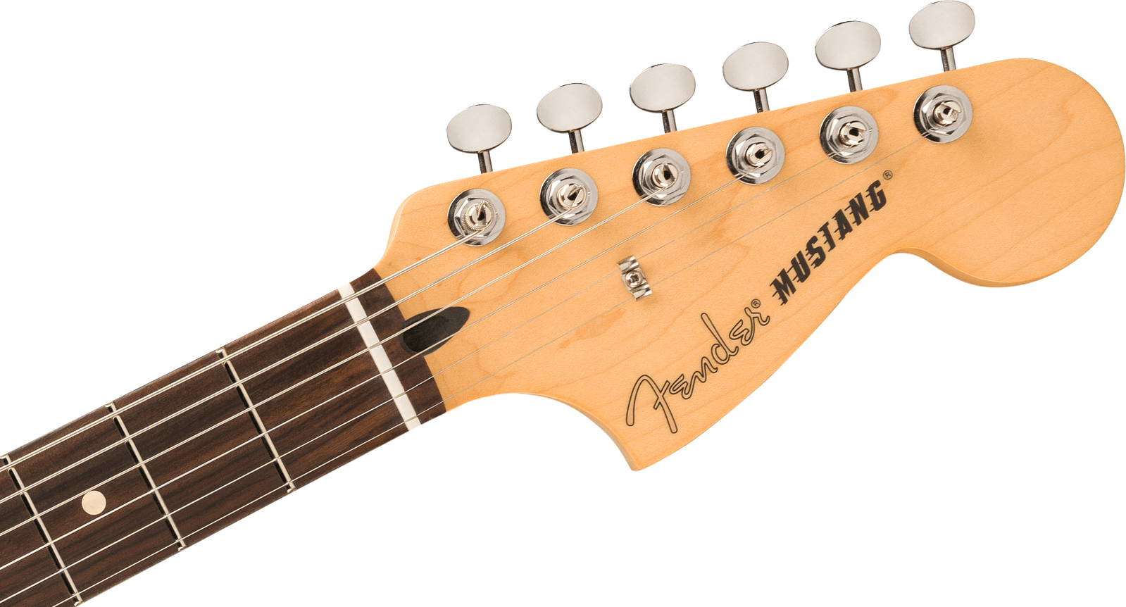 The Player II Mustang radiates timeless Fender charm, but under the hood, it's primed for today's players. Everything about the neck is designed for fast and fluid playability, from the Modern C-profile with silky satin urethane finish on the back to the comfy 9.5-radius slab rosewood or maple fingerboard with smooth rolled edges and 22 medium jumbo frets. A classic alder body is available in both timeless Fender finishes and never-before-seen colors unearthed from the archives. Player Series Alnico V Single-Coil Mustang® pickups offer crystalline highs, musical mids and tight lows that elevate any genre. The 3-way toggle switch lets you easily dial in everything from glassy neck pickup chime to cutting bridge pickup snarl and all points in between, while a 6-saddle hardtail bridge, bent steel saddles and ClassicGear tuners ensure precise tuning stability for the flexibility to explore endless sonic possibilities.