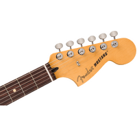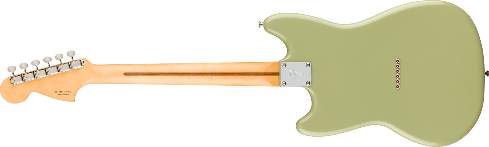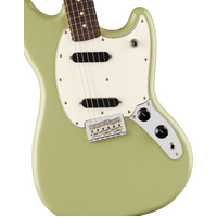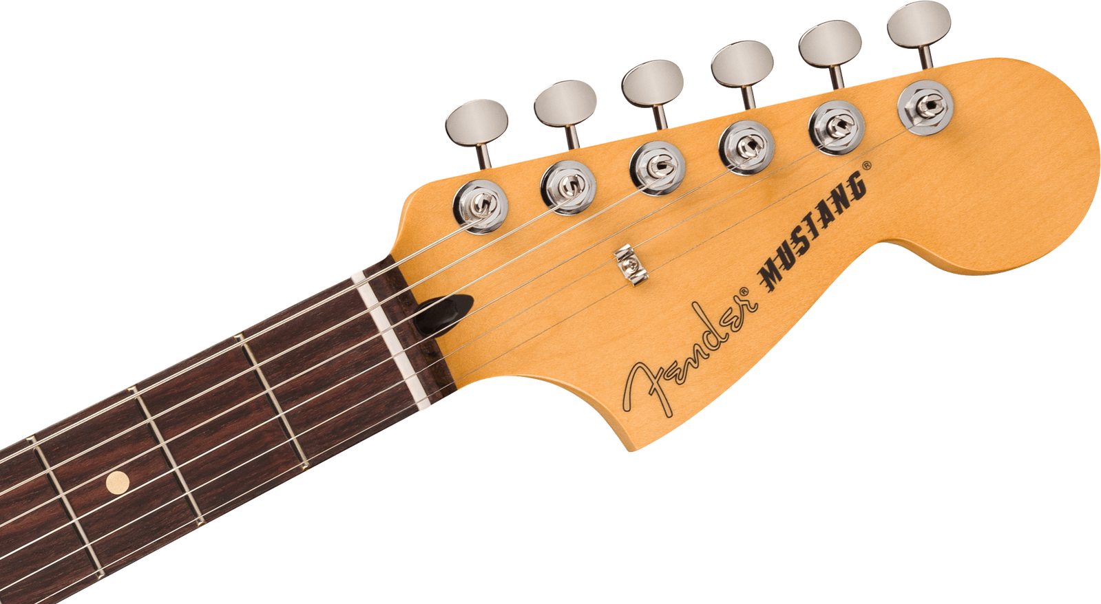 The Player II Mustang radiates timeless Fender charm, but under the hood, it's primed for today's players. Everything about the neck is designed for fast and fluid playability, from the Modern C-profile with silky satin urethane finish on the back to the comfy 9.5-radius slab rosewood or maple fingerboard with smooth rolled edges and 22 medium jumbo frets. A classic alder body is available in both timeless Fender finishes and never-before-seen colors unearthed from the archives. Player Series Alnico V Single-Coil Mustang® pickups offer crystalline highs, musical mids and tight lows that elevate any genre. The 3-way toggle switch lets you easily dial in everything from glassy neck pickup chime to cutting bridge pickup snarl and all points in between, while a 6-saddle hardtail bridge, bent steel saddles and ClassicGear tuners ensure precise tuning stability for the flexibility to explore endless sonic possibilities.