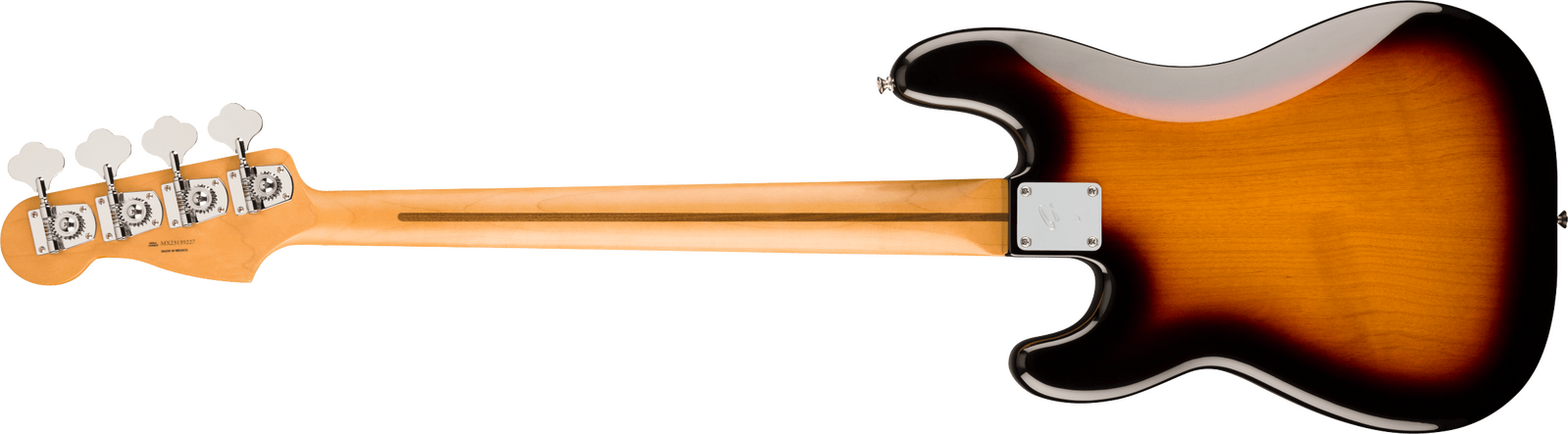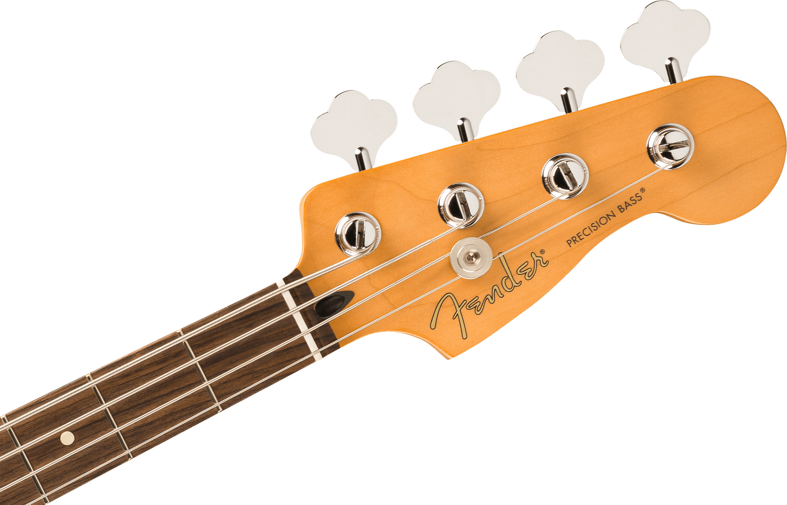 Contoured Alder Body Modern "C" Neck Profile 9.5-Radius Maple or Rosewood Fingerboard with Rolled Edges Player Series Alnico V Split-Coil Precision Bass® Pickups 4-Saddle Bridge with Single-Groove Steel Barrel Saddles Open-Gear Tuning Machines