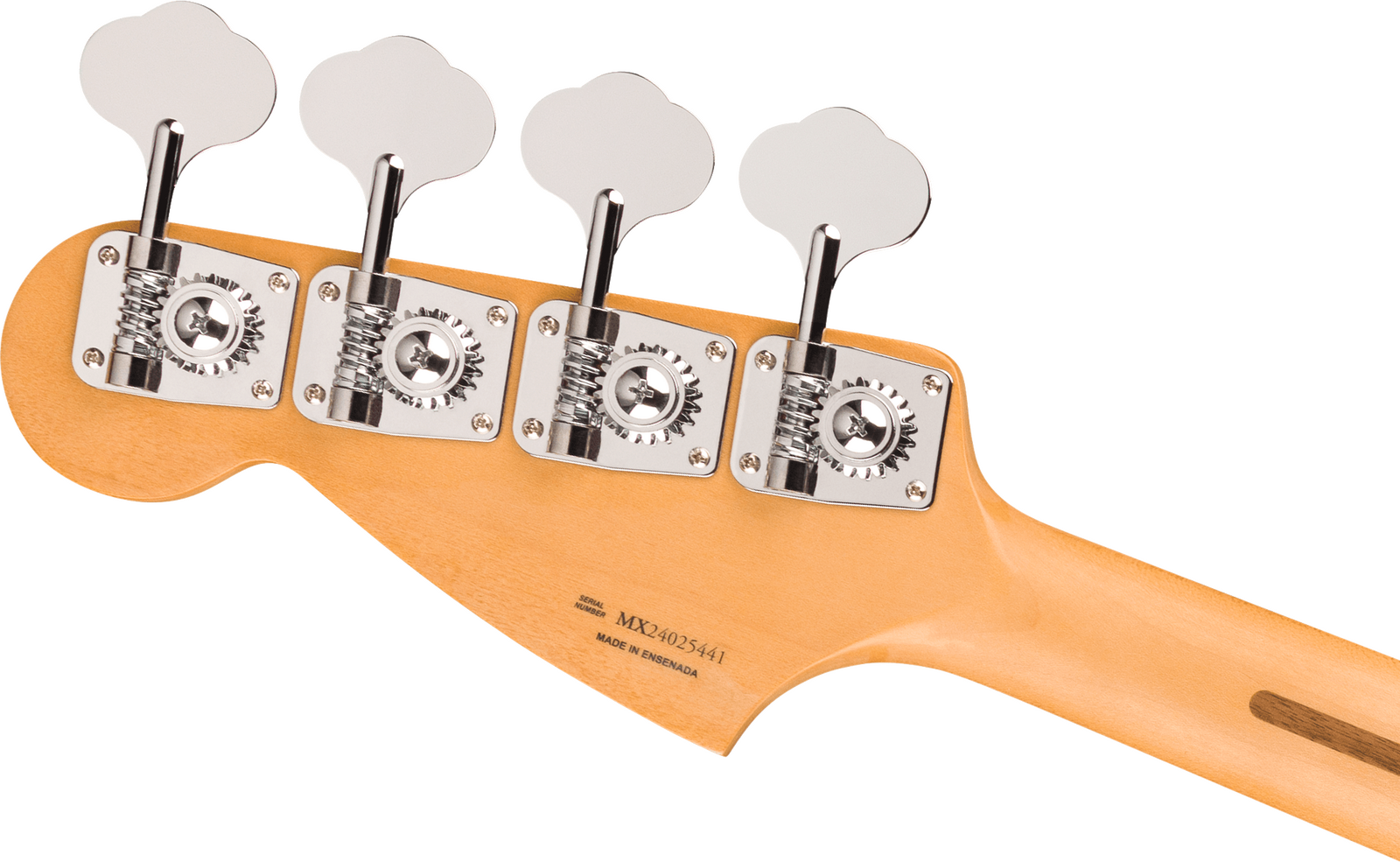 Alder Body Modern "C" Neck Profile 9.5-Radius Maple or Rosewood Fingerboard with Rolled Edges Player Series Alnico V Split-Coil Precision Bass® and Alnico V Single-Coil Jazz Bass® Pickups 4-Saddle Bridge with Single-Groove Steel Barrel Saddles Open-Gear Tuning Machines