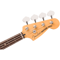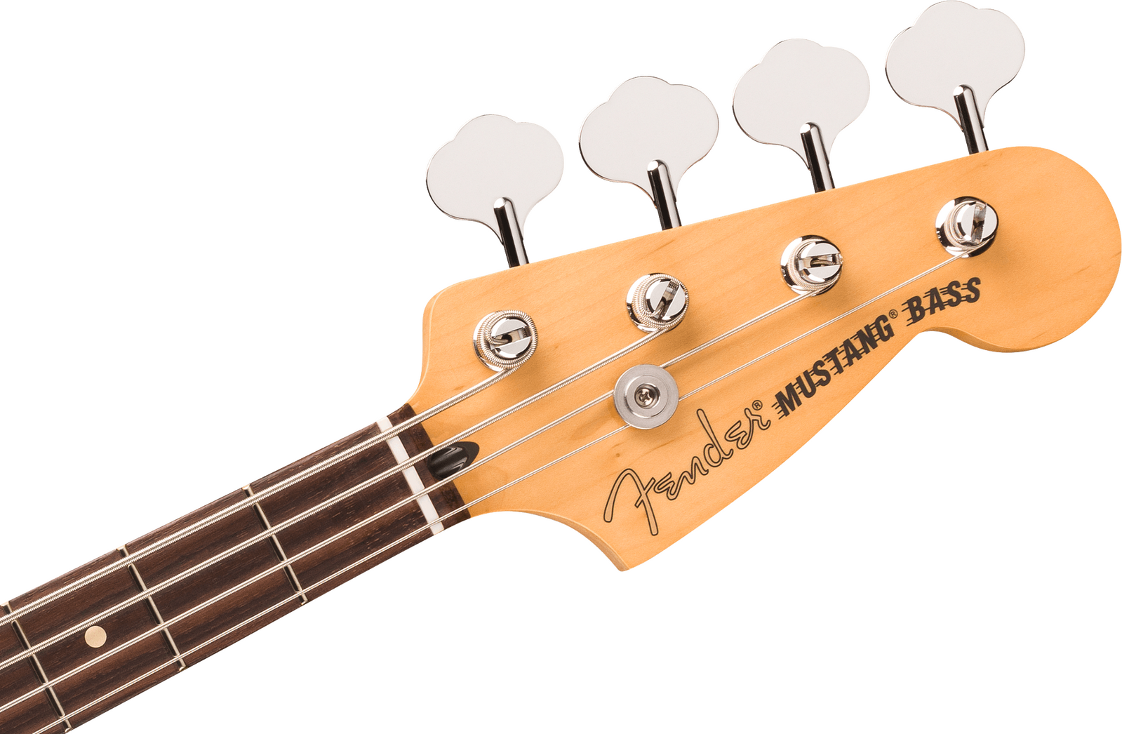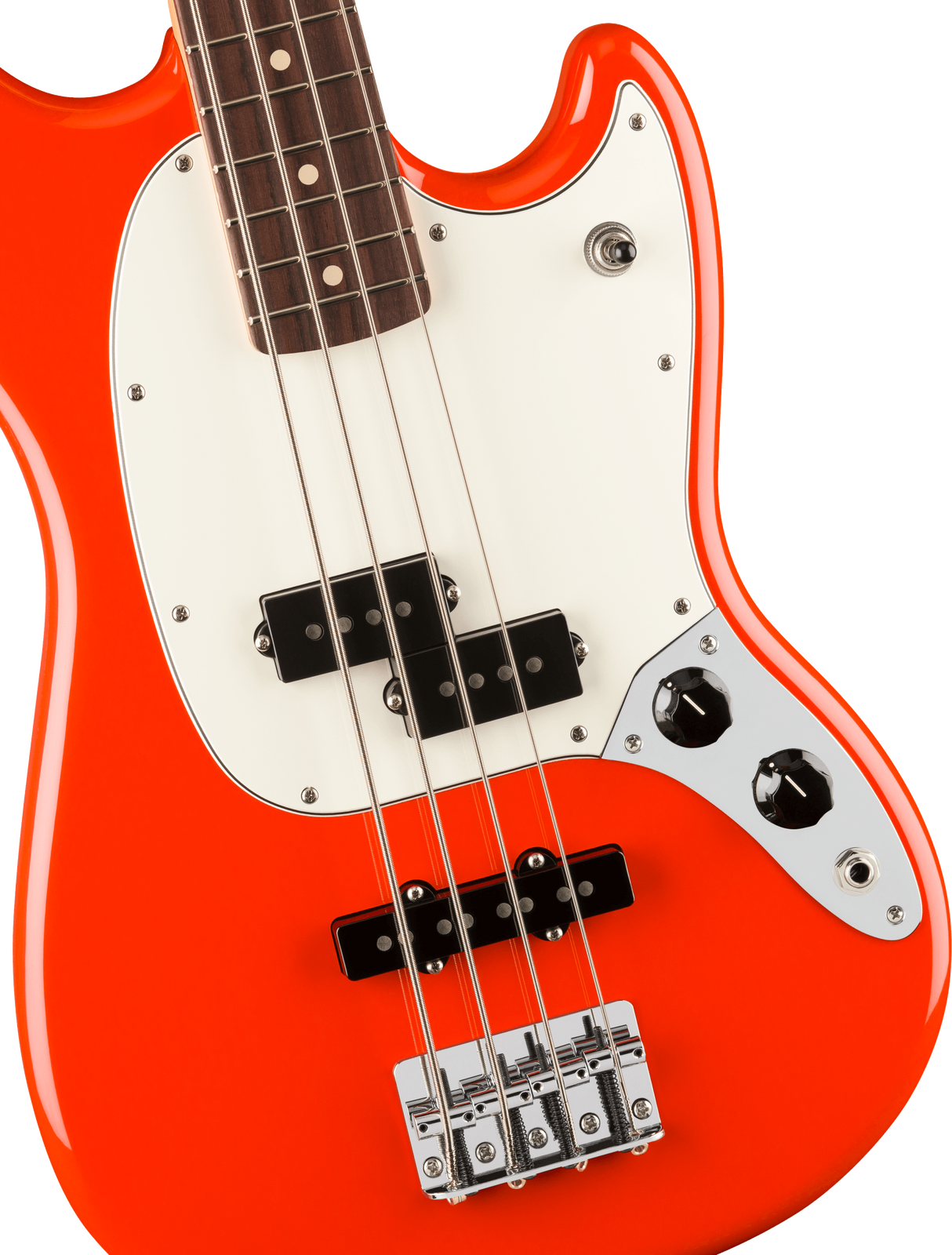 The Player II Mustang® Bass PJ radiates timeless Fender charm, but under the hood, it's primed for today's players. Everything about the neck is designed for fast and fluid playability, from the Modern C-profile with silky satin urethane finish on the back to the comfy 9.5-radius slab rosewood or maple fingerboard with smooth rolled edges and 20 medium jumbo frets. A classic alder body is available in both timeless Fender finishes and never-before-seen colors unearthed from the archives. Player Series Alnico V Split-Coil P bass® and Single-Coil J bass® pickups offer sweet highs, growling mids and seismic lows that elevate any genre. The 3-way toggle switch lets you easily dial in everything this versatile pickup set has to offer, while an adjustable 4-saddle bridge, single-groove steel saddles and open-gear tuners ensure precise tuning stability for the flexibility to explore endless sonic possibilities.