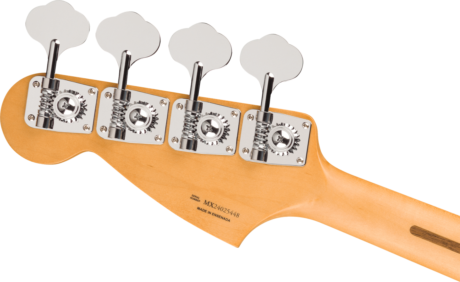 Alder Body Modern "C" Neck Profile 9.5-Radius Maple or Rosewood Fingerboard with Rolled Edges Player Series Alnico V Split-Coil Precision Bass® and Alnico V Single-Coil Jazz Bass® Pickups 4-Saddle Bridge with Single-Groove Steel Barrel Saddles Open-Gear Tuning Machines