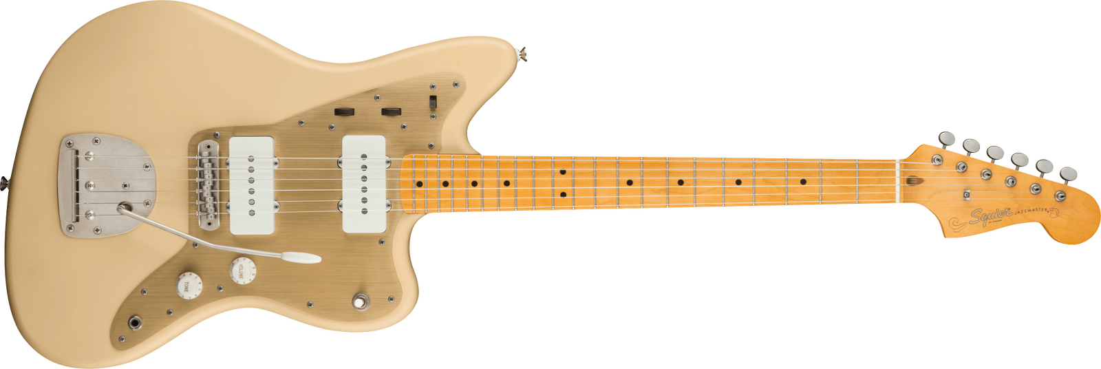 Fender Squier 40th Anniversary Jazzmaster®, Vintage Edition, Maple Fingerboard, Gold Anodized Pickguard, Satin Desert Sand