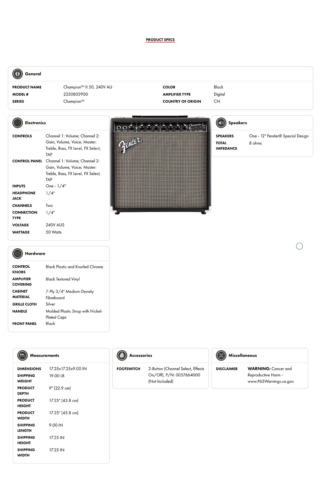 Yes, We Price - Match Fender Champion™ II 50, 240V Guitar Amplifier(2330803900)