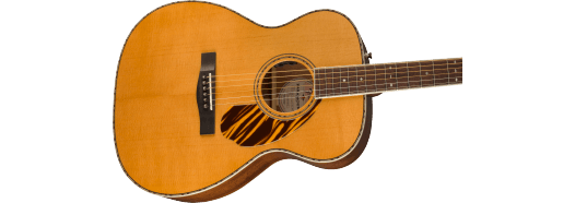 The Paramount PO-220E combines state-of-the-art craftsmanship with vintage-inspired appointments, delivering the best of both worlds. Built with the choice of a solid spruce or solid mahogany top paired with solid mahogany back and sides, the PO-220E features an offset X-bracing pattern that has been carefully refined to optimize resonance and tone. A Fender and Fishman®-designed pickup amplifies the warm, mid-focused tone of the PO-220E's newly designed orchestra body shape, while the soundhole-mounted controls preserve the vintage aesthetics. Under the top, a body-sensing pickup enhances the soundboard's vibrations which can then be blended with the undersaddle S-Core pickup.