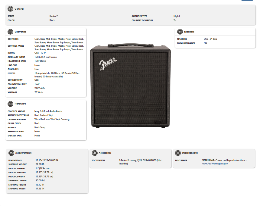 Rumble LT25 incorporates what we’ve learned over decades of producing the best-sounding bass amps on the planet. It’s ideal for any bassist who wants a great-sounding, easy-to-use amp with a super-simple user interface. A collection of 50 presets covers a wide range of music—a “greatest hits” of electric bass tones. The versatile signal chain with high-quality onboard amp and effects models produces amazing tones, making it an ideal practice amp for home or office. This fantastic unit offers 50 different presets. 30 of these presetscan be edited and the other 20 "hidden" presets offer a wide range of great tones fit for almost any genre.