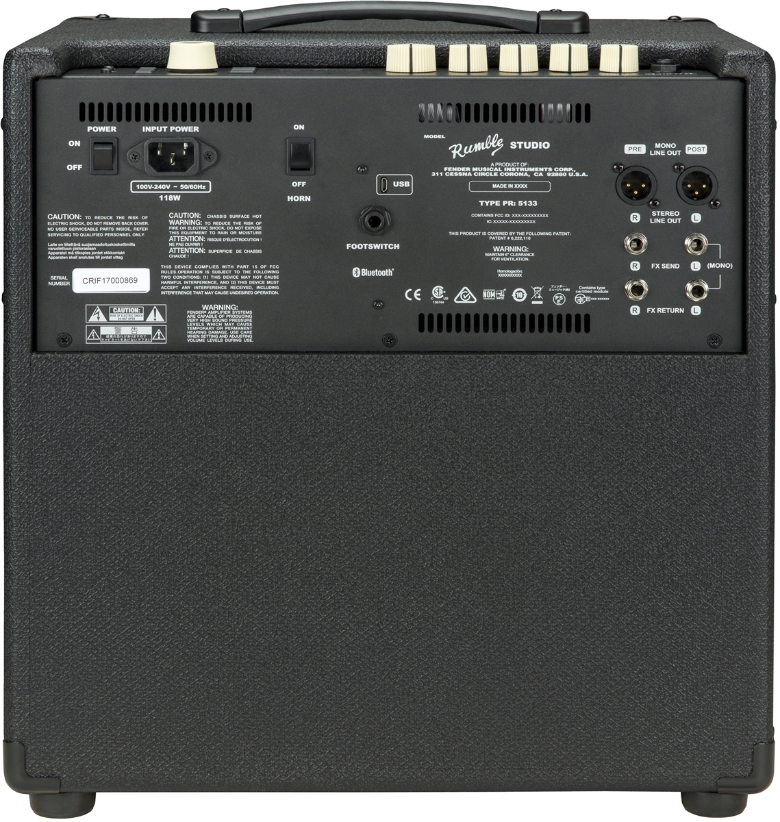 Fender Rumble Studio 40-Watt Bass Amplifier. Wifi-compatible and exclusive Bluetooth operation via Fender Tone app. Perfect for any bass guitarist as of its easy-to-use design.