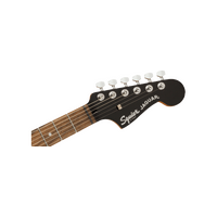 The Squier® Contemporary Jaguar® HH ST brings modern features and bold aesthetics to an iconic Fender platform to satisfy today’s most discerning and daring players. At the heart of this guitar is a pair of Squier SQR™ Atomic™ humbucking pickups with coil-split and series/parallel switching on the upper control plate for a wide range of genre-defying sonic settings. The roasted maple neck was chosen for its optimal tone and stability, and a sculpted heel design allows for improved access all the way to the 22nd fret. High-performance components round out the feature list and include a fully adjustable bridge with stop tailpiece (ST) for rock-solid string feel, and a set of sealed-gear tuning machines with split shafts for smooth tuning action and easy restringing. Eye-catching styling cues include lustrous chrome hardware and a sleek painted headstock with chrome logos for a premium look.