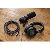 - Our best mic and headphones – The included Vocaster DM14v broadcast-quality dynamic mic features built-in windshield and shock mount, and HP60v closed-back studio headphones let you hear your show as the world will.