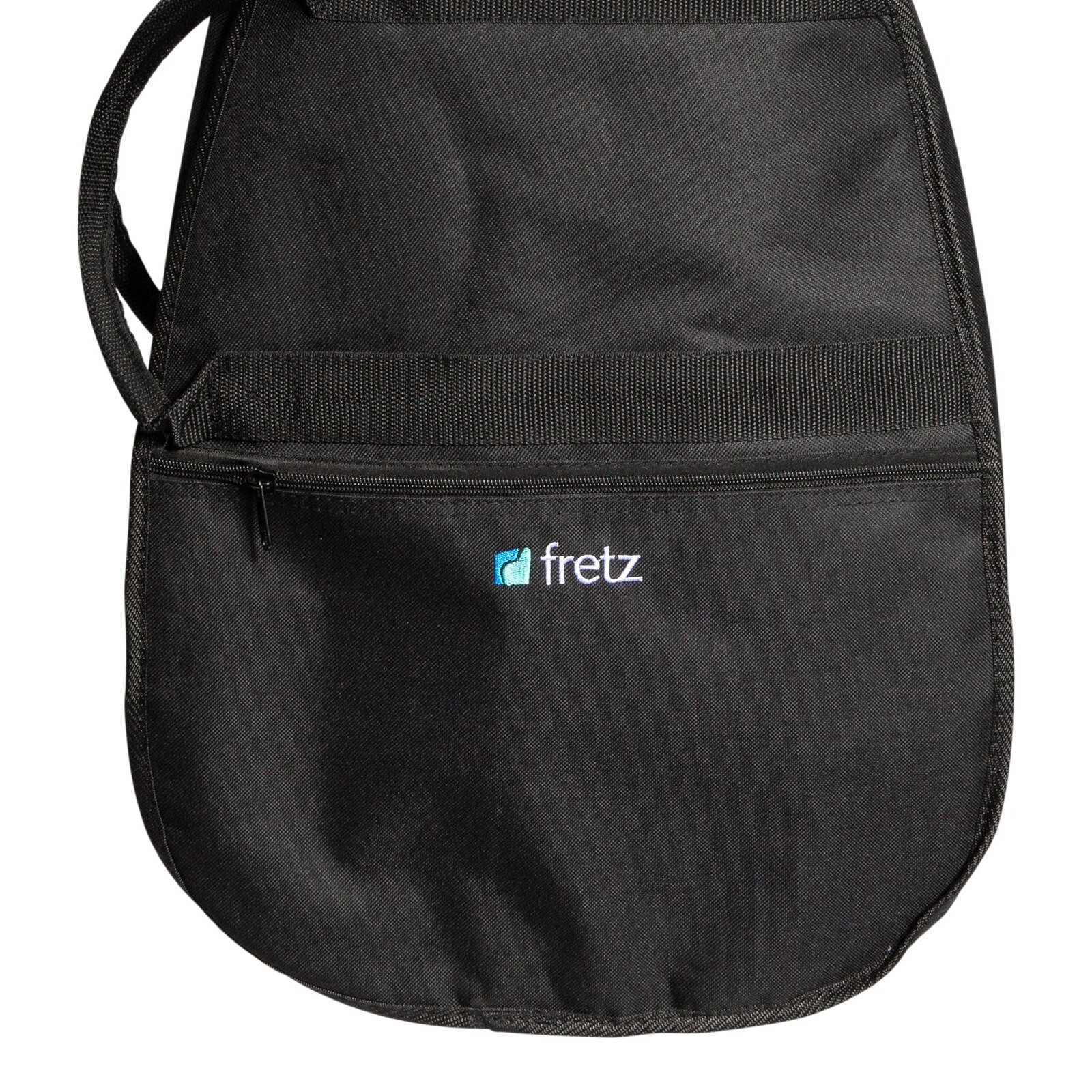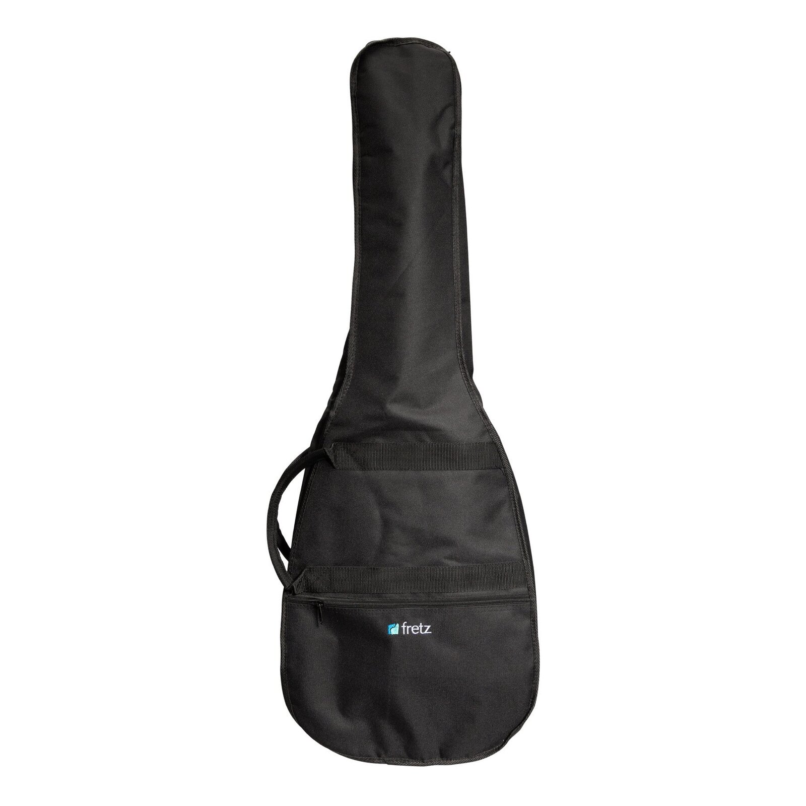 Fretz Padded 3/4 Classical Guitar gig bags are constructed of heavy duty polyester with 4mm thick foam padding and feature tear resistant interior panels at the headstock and bridge, heavy duty zip, front accessories pocket, stitched carry handles and adjustable back straps with quick releases clips.