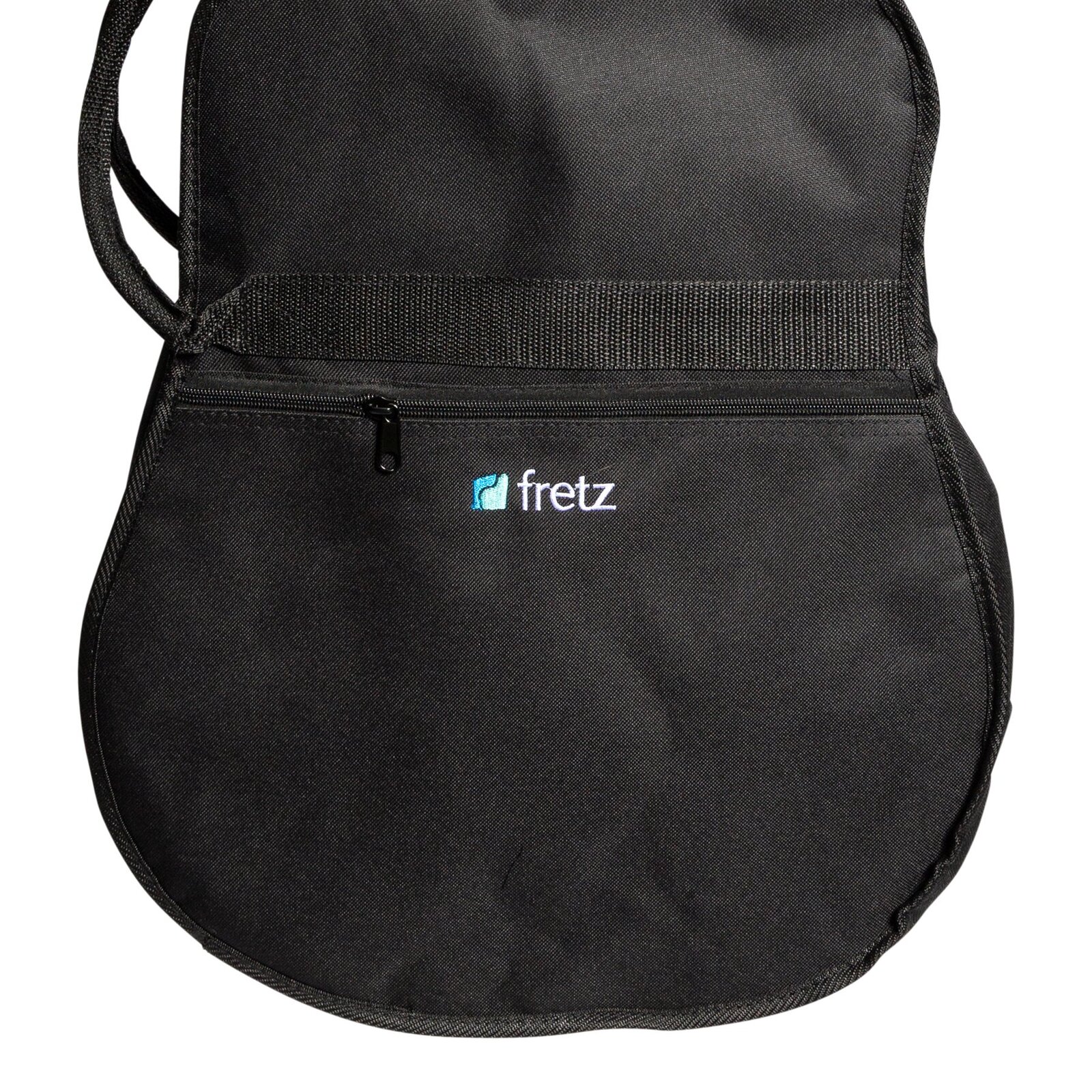 Fretz Padded Classical Guitar gig bags are constructed of heavy duty polyester with 4mm thick foam padding and feature tear resistant interior panels at the headstock and bridge, heavy duty zip, front accessories pocket, stitched carry handles and adjustable back straps with quick releases clips.