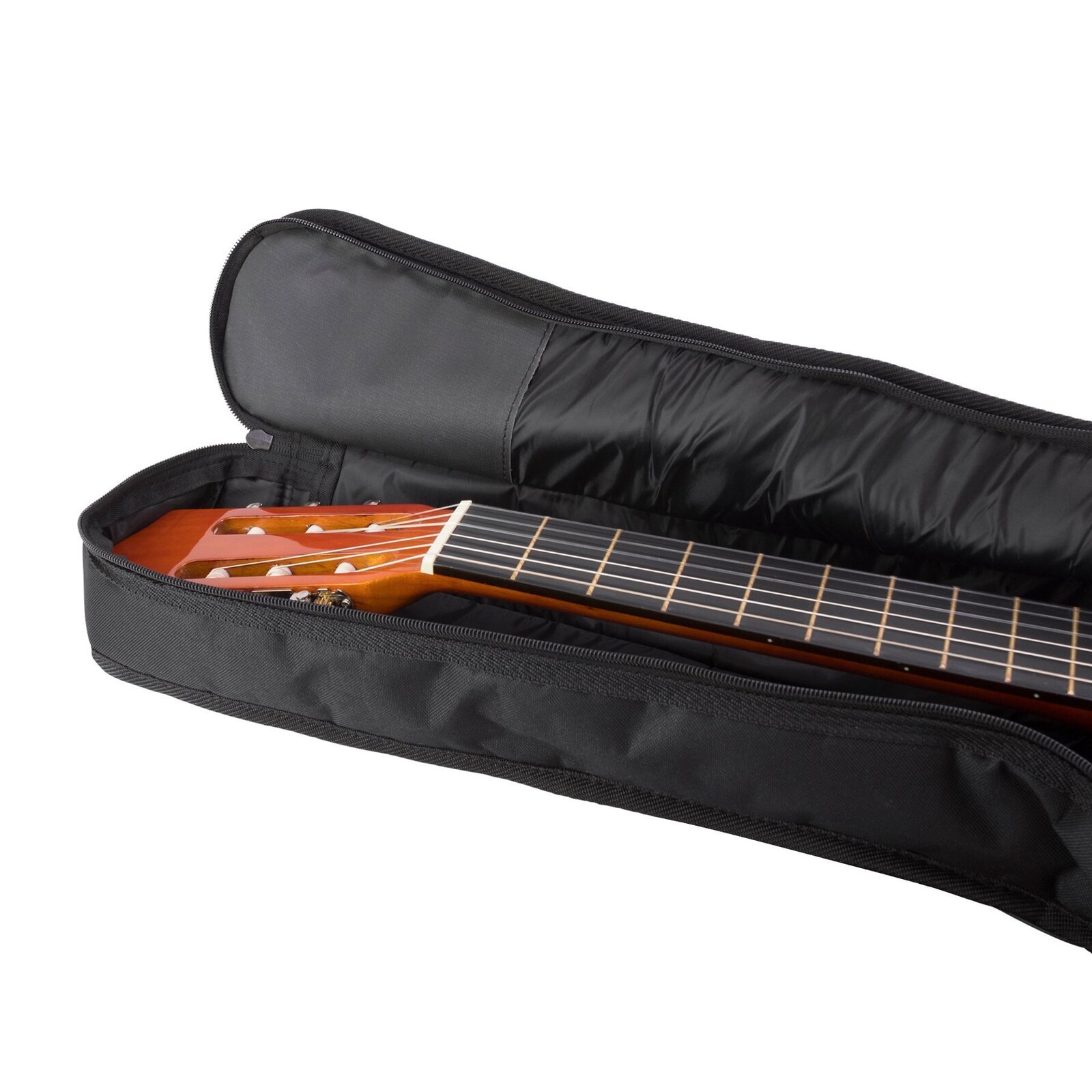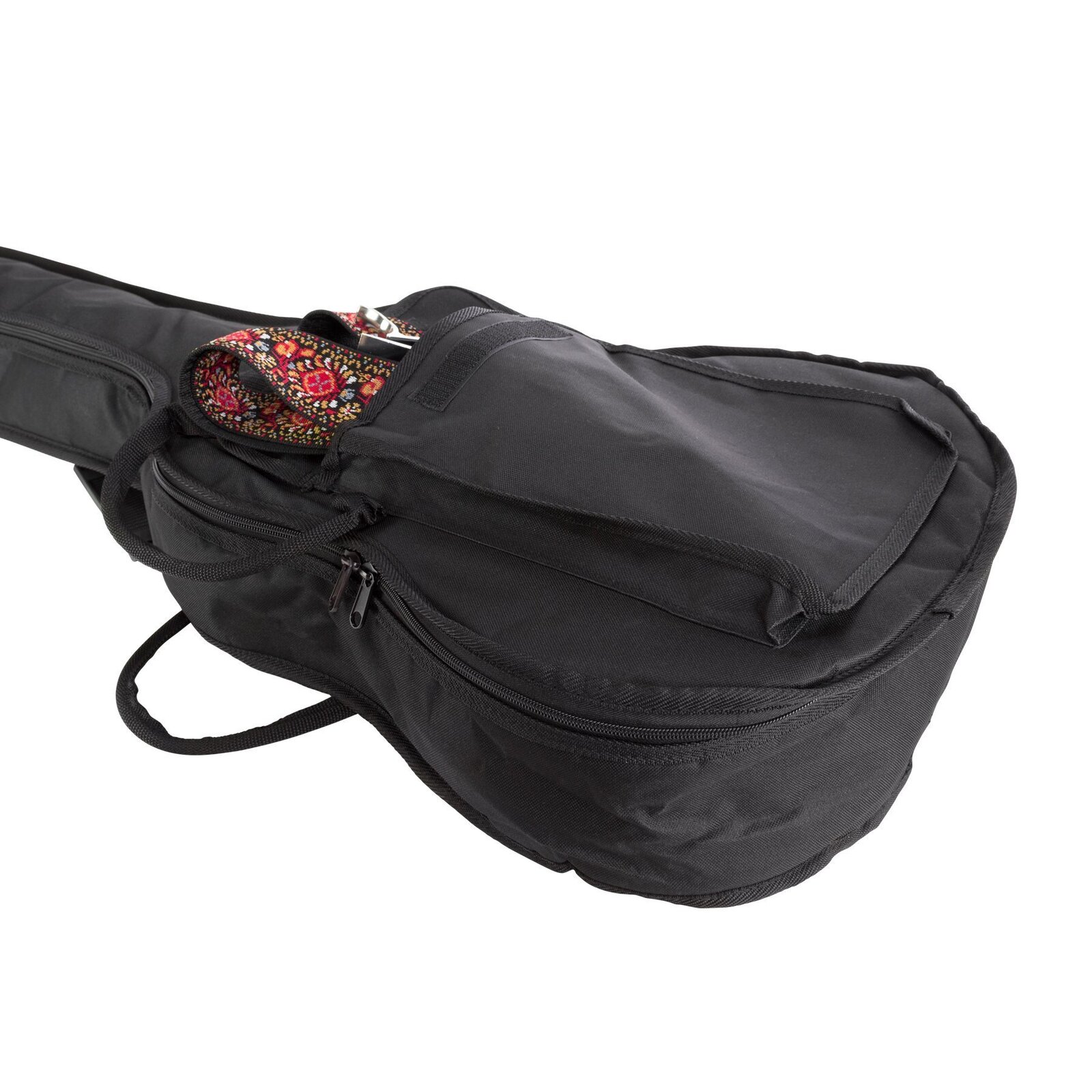 The Fretz Standard 3/4 Classical Guitar series gig bags are constructed of heavy duty polyester with 8mm thick foam padding and feature tear resistant interior panels at the headstock and bridge, heavy duty zip, front accessories pocket, stitched carry handles and adjustable back straps with quick releases clips.
