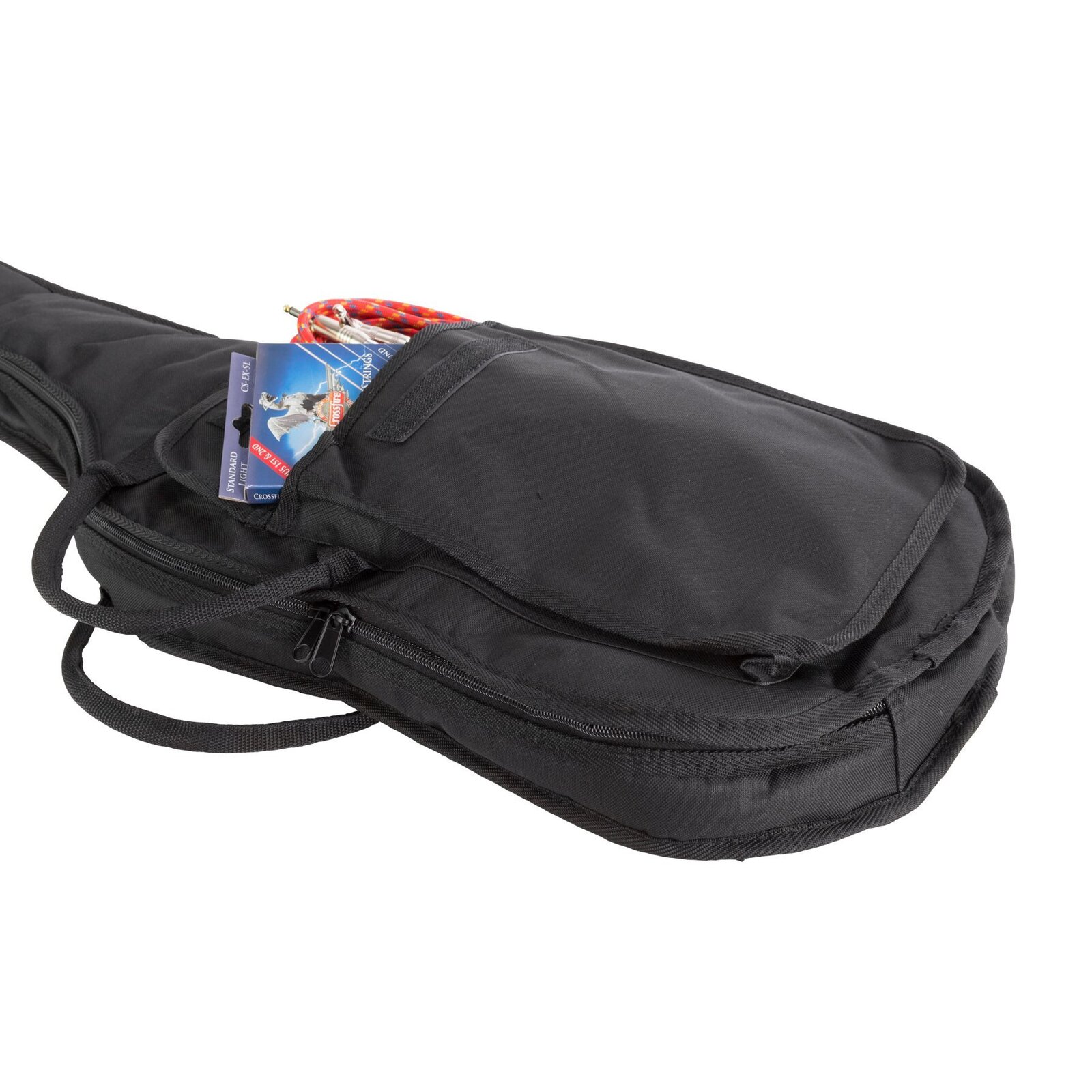 The Fretz Standard Electric Guitar series gig bags are constructed of heavy duty polyester with 8mm thick foam padding and feature tear resistant interior panels at the headstock and bridge, heavy duty zip, front accessories pocket, stitched carry handles and adjustable back straps with quick releases clips.