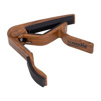 The Fretz "Woodie" ukulele capo is suitable for a variety ukulele sizes and features trigger grip functionality for automatic tensioning, and protective rubber grips to prevent damage to your ukuleles neck and fretboard.