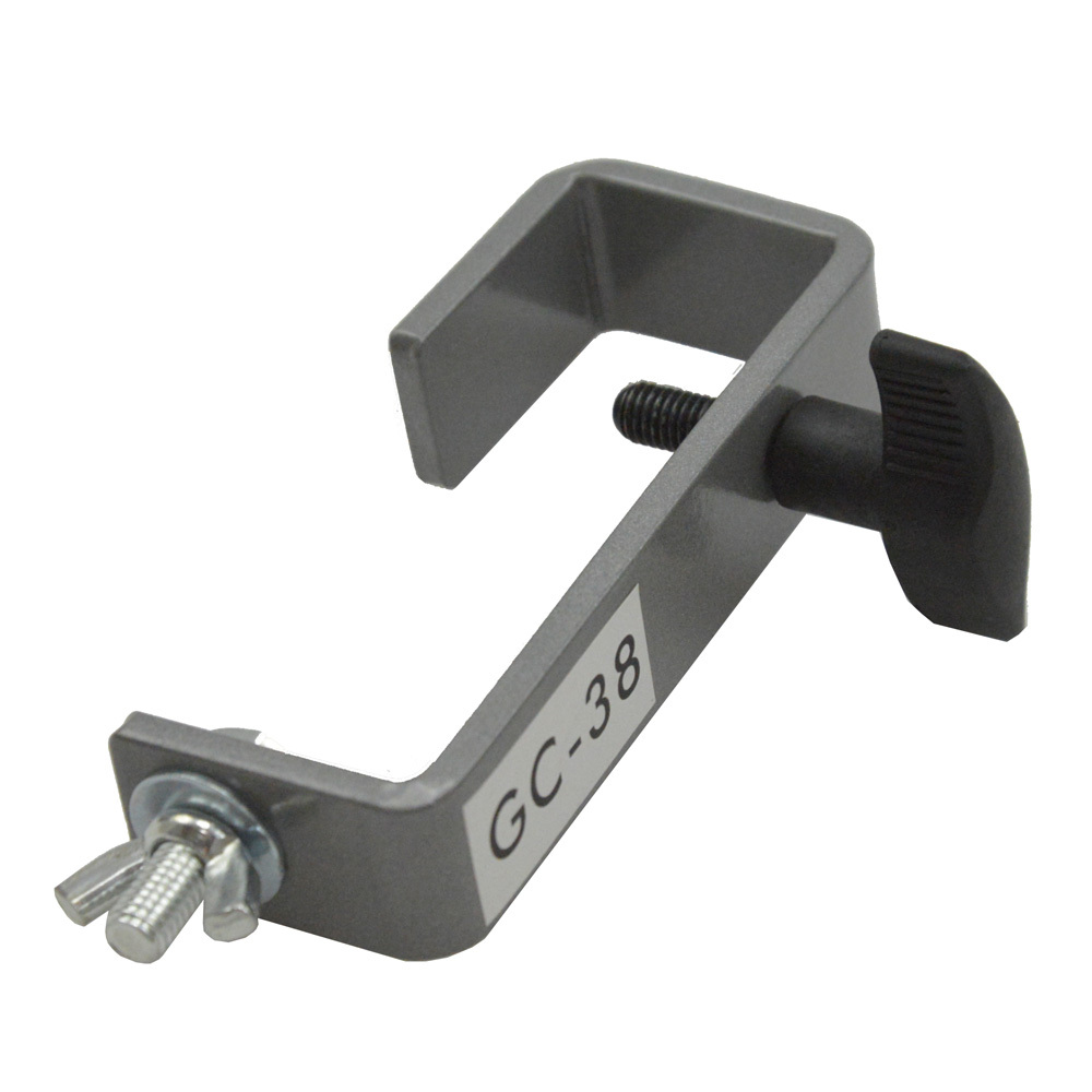 The Prostand GC-38S is a premium quality hook-clamp designed to safely hang your lighting effects and fixtures. Made from folded steel for strength and reliability with a modern silver power coated finish. Great for light duty applications and semi-permanent installations such as theatres and venues. Designed to suit 38mm lighting bars, and stage trussing with a load capacity of up to 35 kg. Supplied with an M8 bolt and wing-nut for connecting to your preferred effect / fixture.- Made from high grade Steel