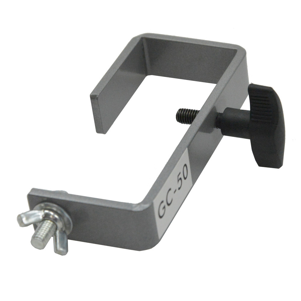The Prostand GC-50S is a premium quality hook-clamp designed to safely hang your lighting effects and fixtures. Made from folded steel for strength and reliability with a sleek silver power coated finish. Great for light duty applications and semi-permanent installations such as theatres and venues. Designed to suit 50mm lighting bars, and stage trussing with a load capacity of up to 50 kg. Supplied with an M8 bolt and wing-nut for connecting to your preferred effect / fixture.- Made from high grade Steel