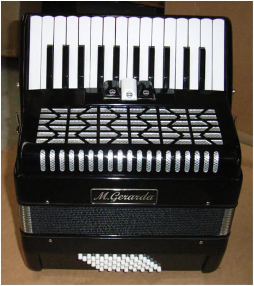Gerarda Piano Accordion 48 Bass Buttons 6 Rows 26 Treble Keys 3+0 Variable Tone In Case Black