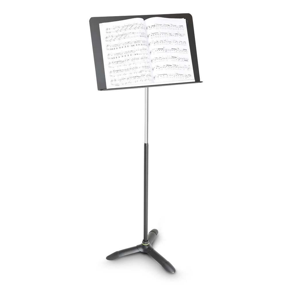 The GNSORC 1 is a rugged orchestra-style music stand designed for ultimate handling convenience. Height and support tilt adjustment rely on frictional force and do not require any set screws. All frictive parts are engineered for zero wear. The stand of powder coated steel features a lightweight 50 x 33.5 cm aluminium support.