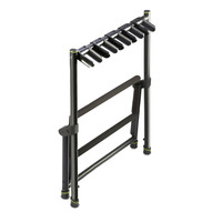 Designed for all acoustic, electric and bass guitars, Gravity guitar racks are available in four versions accommodating 3, 5, 7 or 9 instruments. They are made of heavy-duty steel tubing with a black powder coating finish. Holding the necks firmly and securely the adjustable soft touch yokes are padded and detachable. The rails supporting the guitar bodies are covered in specifically formulated foam to prevent dents and scratches. Quick to set up and space saving, the Gravity guitar racks fold up flat for easy transport and storage.