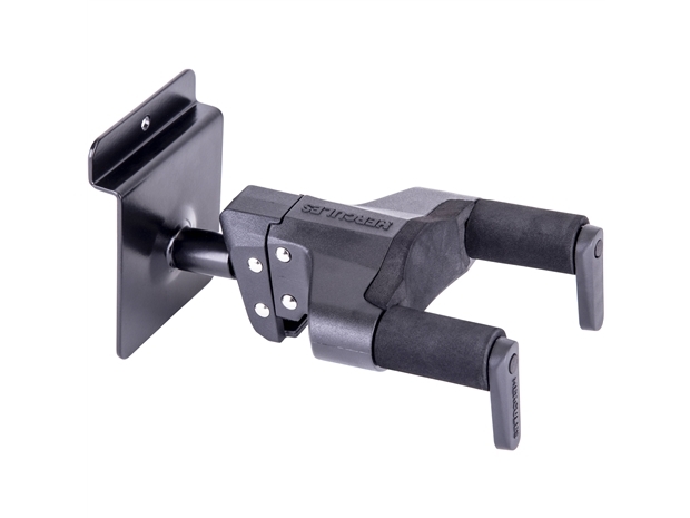 The HERCULES Auto-Swivel Yoke Hanger GSP39SBPLUS rotates automatically to accommodate different shaped guitars or basses vertically and safely. It features a slat wall base for display use.