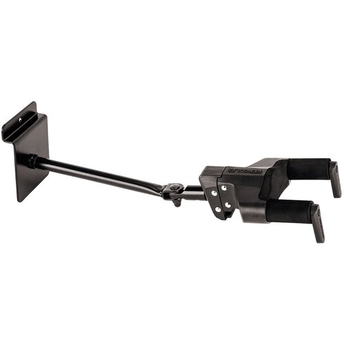 The Hercules GSP40SB is a unique, single guitar hanger for Slat Wall mounting with an Auto Grab System that holds your instrument securely, yet gently. The Auto Grab System is driven by the weight of the guitar or bass. When placed in the yoke, the housing slides down, rotating the arms to secure it. When you are ready to play, lift up and the AGS automatically releases! The grab Yoke is coated with SFF lacquer-safe rubber in order to protect your instrument.