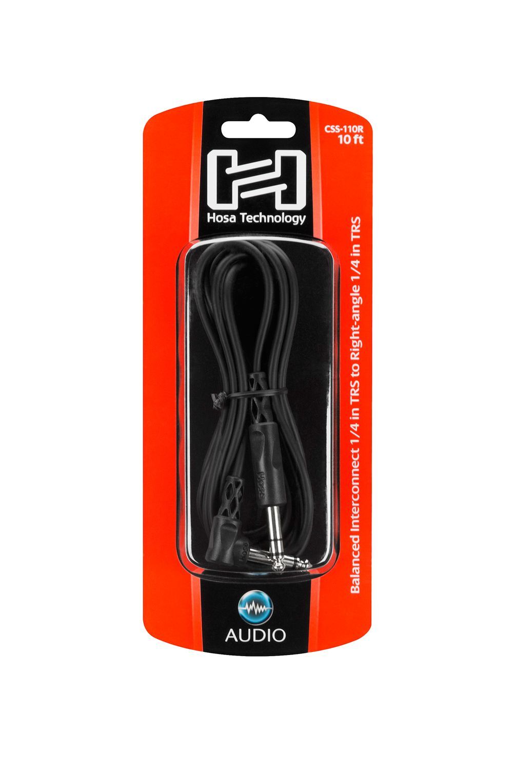HOSA CSS110R Balanced Interconnect, 1/4 in TRS to Right-angle 1/4 in TRS, 10 ft