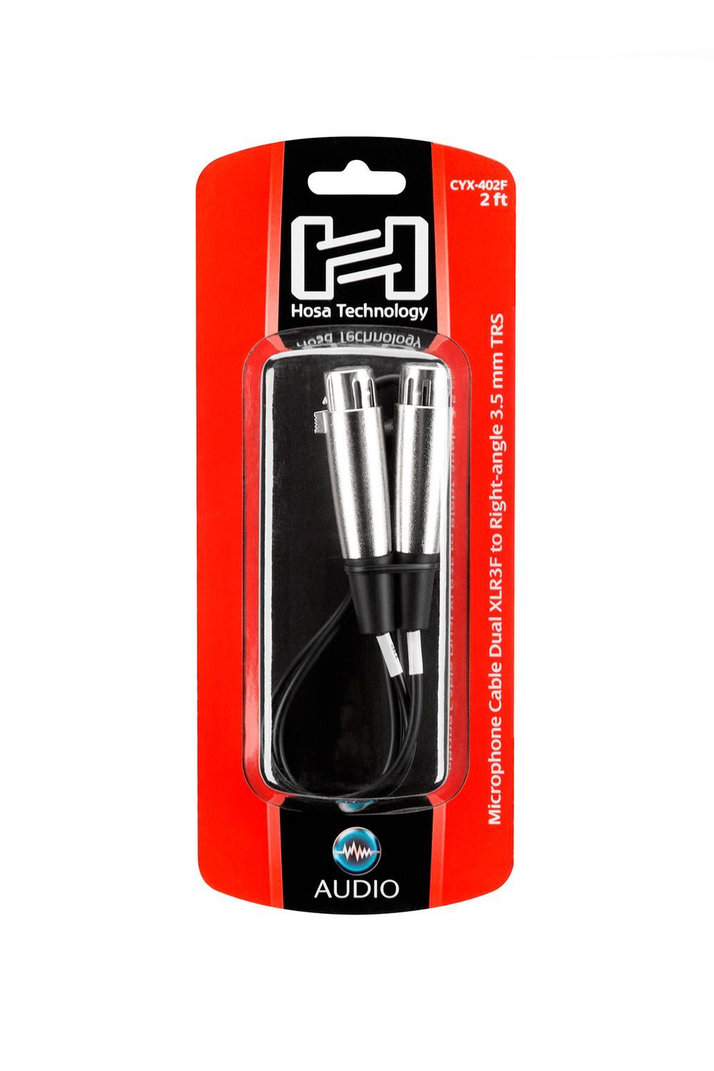 HOSA CYX402F Camcorder Microphone Cable, Dual XLR3F to Right-angle 3.5 mm TRS, 2 ft