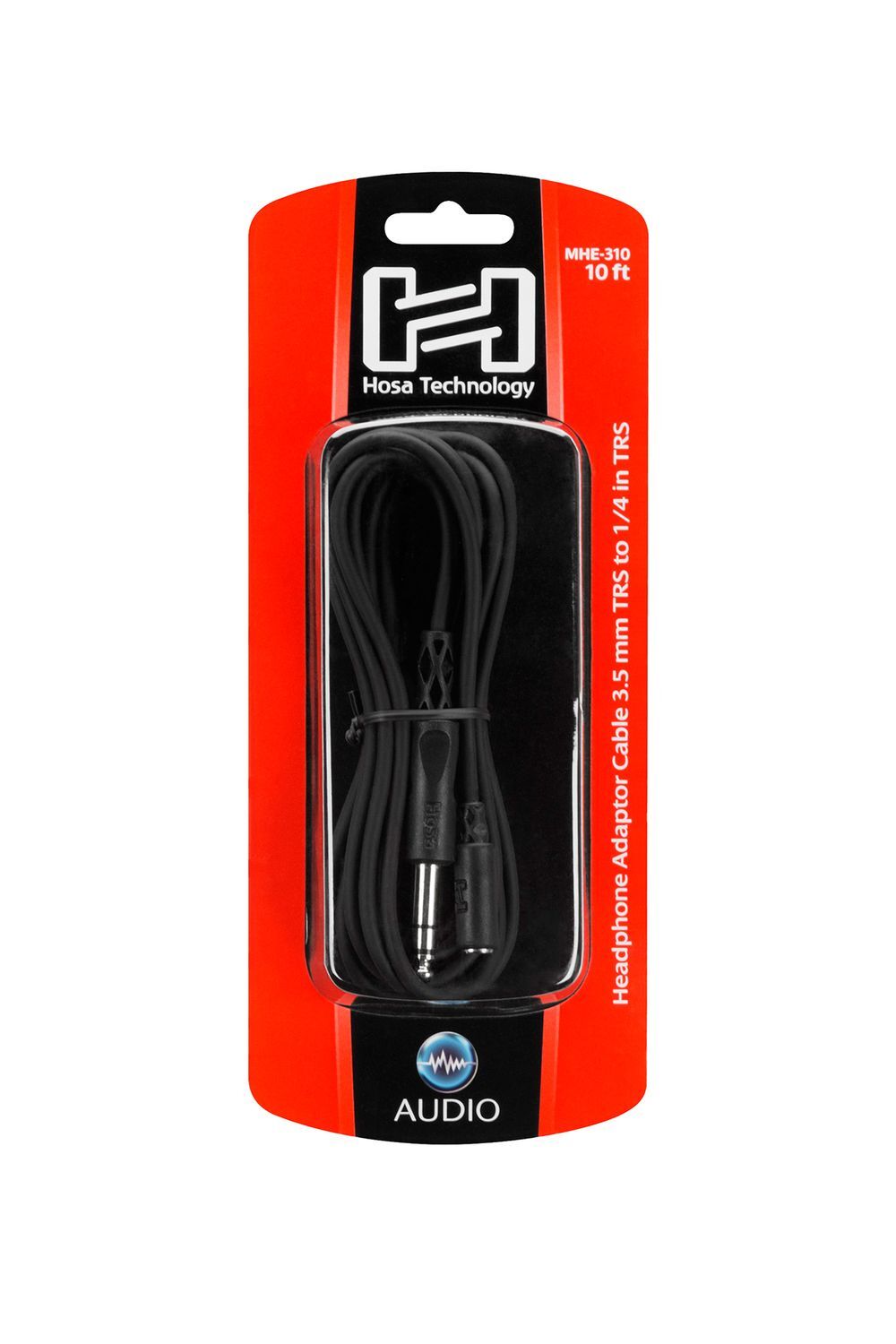 HOSA MHE310 Headphone Adaptor Cable, 3.5 mm TRS to 1/4 in TRS, 10 ft