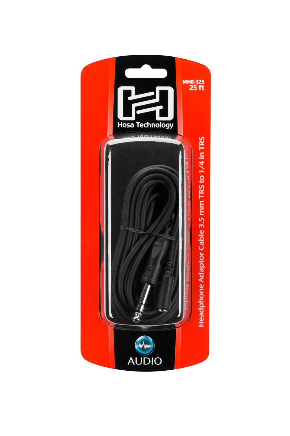 HOSA MHE325 Headphone Adaptor Cable, 3.5 mm TRS to 1/4 in TRS, 25 ft