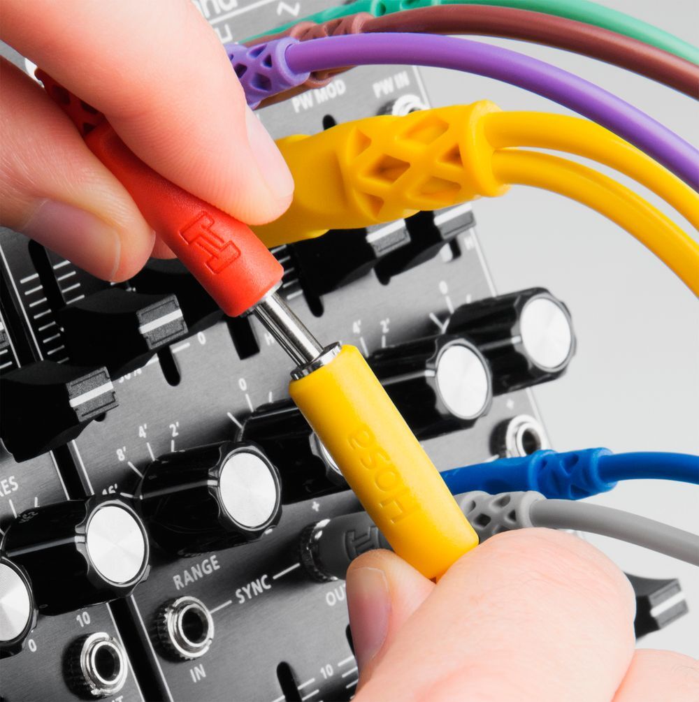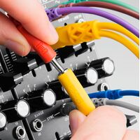 Hopscotch Patch Cables, 3.5 mm TS with 3.5 mm TSF Pigtail to 3.5 mm TS, 5 pc, Various Lengths | The perfect solution for modular synthesizers equipped with mono mini jacks | The pigtail mono mini jack gives users the ability to “jump” the signal to another input point while keeping the original patch intact | Easy-access pigtail jack for quick signal splitting | Slim housings to fit crowded spaces | Nickel-plated plugs for rugged durability and efficient signal transfer | Lifetime warranty