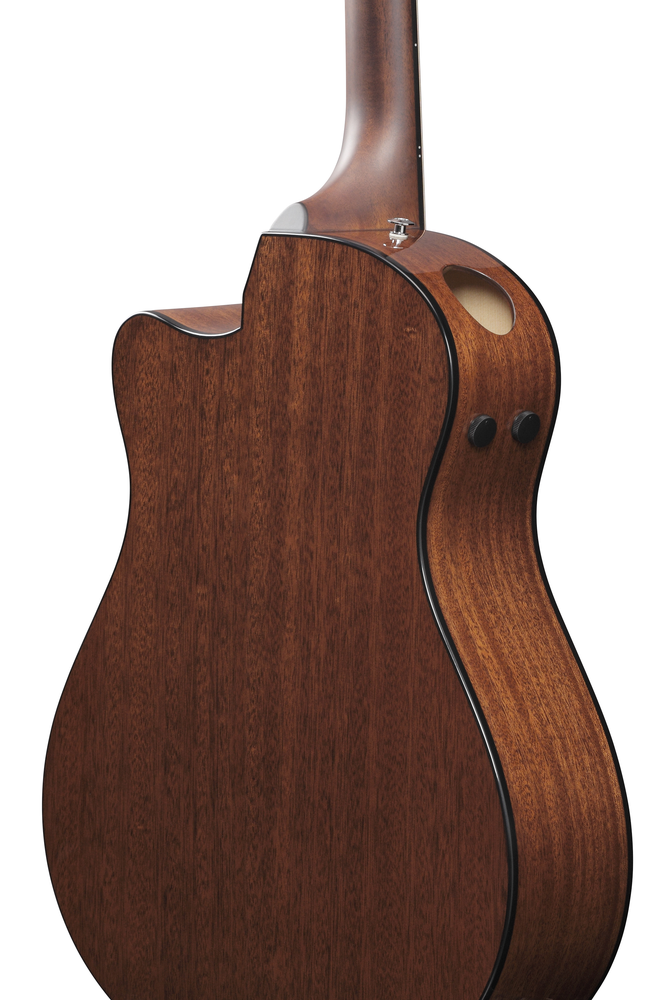 The African Mahogany back and sides offer full-bodied warm mid range.
