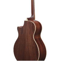 The Okoume back and sides generate a woody, warm tone when the guitar is played softly or finger-picked and provide punchy high-mids with a clear projection when strummed.