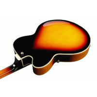 The AF is the most traditional design within the Artcore series. The full-hollow body construction means there are no sound blocks in the body. This construction method produces a rich, complex tone, expressed with a pure voice and full body, the tonal characteristics most highly desired among the discerning Jazz player.