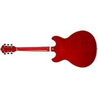 The Ibanez AS93FM TCD Electric Guitar in Transparent Cherry Red is a semi-acoustic guitar built to tackle just about any genre of music you throw at it. The pickups are mounted directly to the center block for increased sustain and feedback elimination.