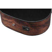 The Okoume back and sides generate a woody, warm tone when the guitar is played softly or finger-picked and provide punchy high-mids with a clear projection when strummed.
