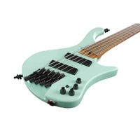 For more than 40 years, Ibanez has pioneered new frontiers in bass development, pushing the boundaries of conventional designs to bass players of all styles and aptitude new ways of expressing themselves. This spirit of exploration has led to the creation of some of the most successful and popular production basses of all time. Utilizing experience and knowledge up until now, Ibanez has developed ultimate ergonomic basses, the EHB basses, which feature the deeply considered headless design. The EHB’s headless construction and specially designed body enable the player to maintain a similar playing position whether seated or standing. Its contoured, ergonomic design and chambered body make for a lightweight, well-balanced, and comfortable instrument that’s excellent for long sets or practice session. There is extra carving on the back of the body behind the lower horn for easier upper fret access. Also, the top half of the back of the body is slanted which allows the bass to rest slight closer to the player’s body for better control and a more ergonomic feel. The EHB1005MS features an American Basswood body and the 5-piece roasted Maple/Walnut neck for well-balanced tone and clear attack. The Roasted Maple in the neck is heat-treated to increase stability, durability, moisture resistance, and tolerance of temperature changes. The Roasted Maple fretboard is also heat-treated for a balanced attack and rich sustain. Highly durable stainless steel frets accentuate tonal brightness and will not rust. Luminescent side dot inlays provide clear visibility in dark environments and the truss rod adjustment is located at the end of neck for easy access. With its multi-scale design, the EHB1005MS creates an "alive" open tone and is comfortable to play. The ergonomic construction coordinates with the player's hand angle as it moves up and down the neck, facilitating a quick, smooth, playing action. The Bartolini® BH2 pickups in a dual-coil style configuration with a lower resonant frequency, provide a balanced, warm response with a tighter bottom end and a fuller midrange. The Vari-mid 3-band EQ features a variable mid-frequency control which allows you to dial in an incredibly wide range of sounds. There is also an EQ bypass switch for passive operation with the treble control acting as a passive tone control when the EQ is bypassed. The MR5HS bridge is designed especially for the EHB basses and features wide intonation range. Each bridge piece is independently and securely attached to the body for maximum vibration transfer, and the saddles are adjustable for string spacing +/-1.5mm, answering every bassist’s individual string spacing demands, no matter what playing style. Teflon washers are used on each tuner for a smooth tuning action. Schaller S-Lock strap lock pins and a Neutrik locking jack hold the strap and cable securely, and a detachable finger ramp and a gig bag are included with each instrument.