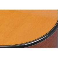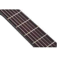 The Ibanez GA5TCE Classical Acoustic-Electric Guitar has a thin line classical cutaway body with a spruce top and mahogany back and sides. It has a slimmer neck and body than the traditional classical guitar design, giving the player a modern feel whilst retaining the classical sound. The mahogany neck and a rosewood fretboard. Gold hardware and classical tuning machines. An Ibanez piezo pickup and 3-band EQ allows you to amplify the sound of the nylon strings with full fidelity.