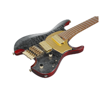 The Quilted Maple top sonically enriches the response for picking. Nyatoh used as body wood provides a rich mid-low end.