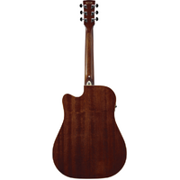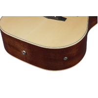 The Okoume back and sides generate a woody, warm tone when the guitar is played softly or finger-picked and provide punchy high-mids with a clear projection when strummed.